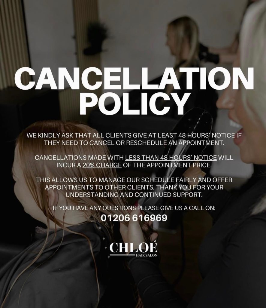 Cancellations: It would be greatly appreciated if 48 hours notice would be given prior to